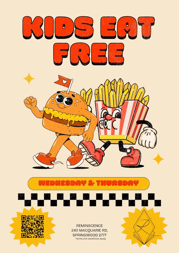 Bring the kid’s Wednesday’s and Thursday’s and get a free meal off the kids menu. Terms and conditions apply.